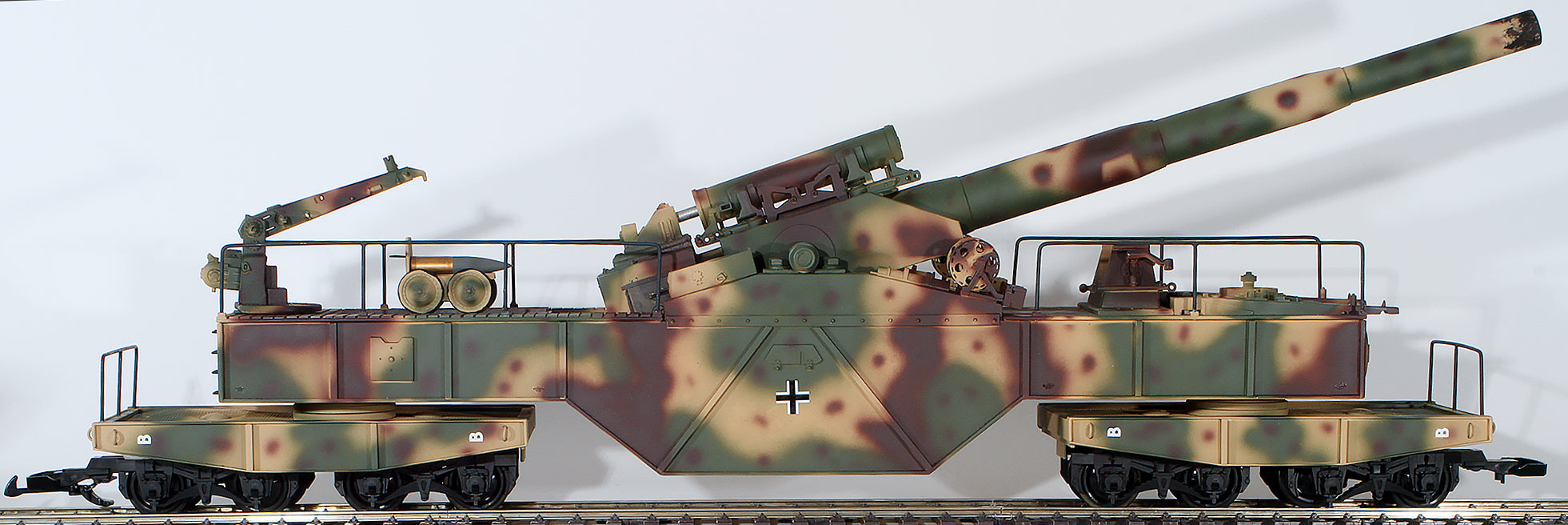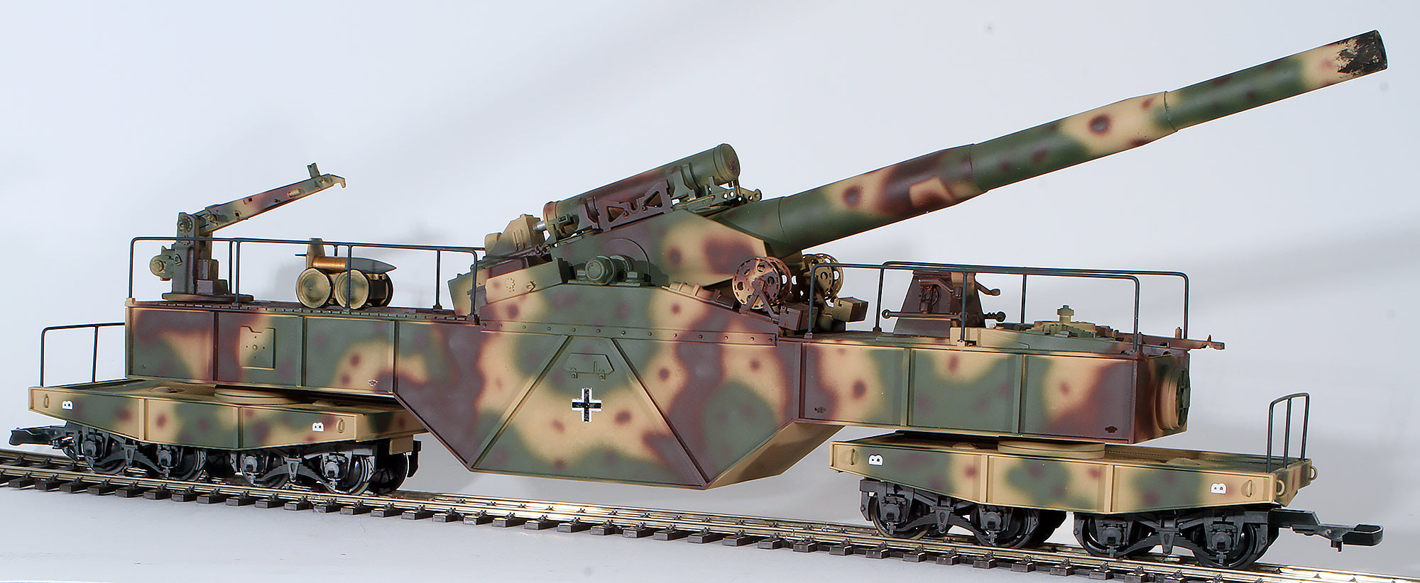 G-Gauge Model Trains- G Panzer #225035 German Eight Axle Railway Gun with 15cm Cannon - Summer Camo