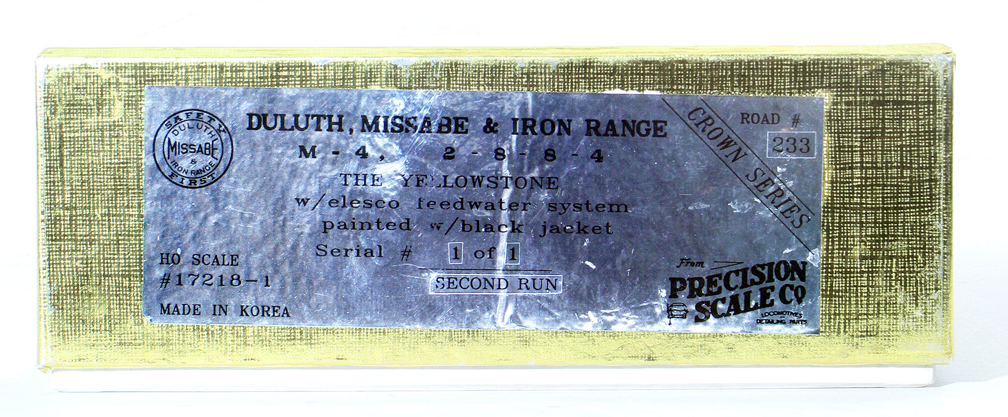 HO BRASS MODEL - PSC 17218-1 DM&IR DULUTH MISSABE & IRON RANGE YELLOWSTONE M-4 2-8-8-4 WITH BLACK JACKET, ELESCO FWH #233 - F/P - 1997 RUN - MPS - CROWN - #1/ 1