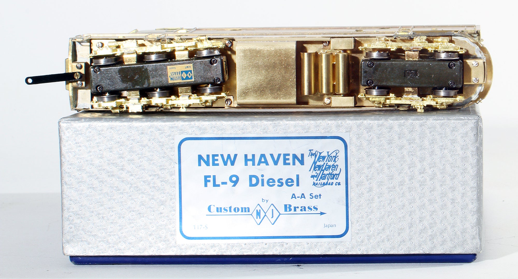 NJ Custom Brass #117-S New Haven A-A Diesel Set Class FL-9 - Unpainted Made in Japan by Kumata. Set included one powered A unit and one unpowered A unit.