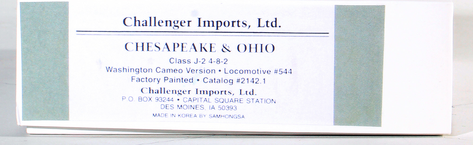 HO Brass Model Trains - Challenger Imports Chesapeake & Ohio 4-8-2 Class J-2 Locomotive #544 "Washington Cameo Version" - Factory Painted