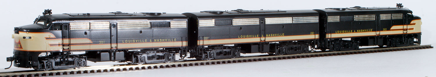HO Brass Model Trains - Louisville and Nashville Railroad ALCO FA2 + FA2 + FB2 Diesel Engine Set, Custom Painted