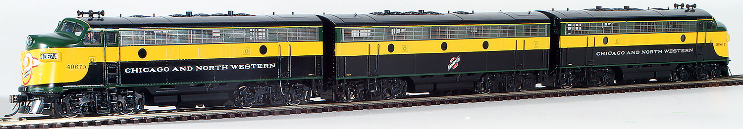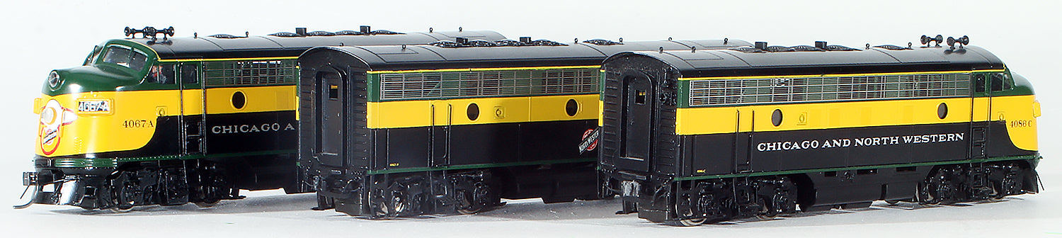 HO Brass Model Trains - Orient Models Chicago North Western F7 A+B+A Diesel Locomotive Set - Painted