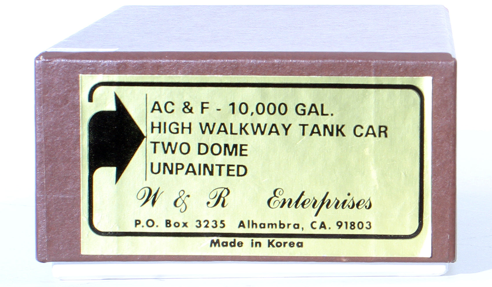 HO Brass Model Trains - W&R 10,000 Gallon High Walkway, Two Dome Tank Car, Made in Korea - Unpainted
