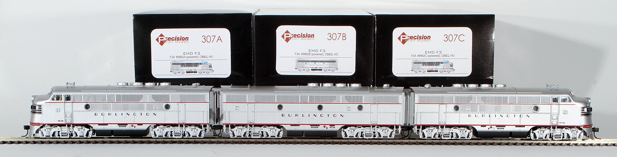 Model Number: 307 CB&Q EMD F3 Ph2a A/B/A Set Chicago, Burlington and Quincy Railroad #307A/307B/307C w/DC/DCC Sound A/B Lashed Up