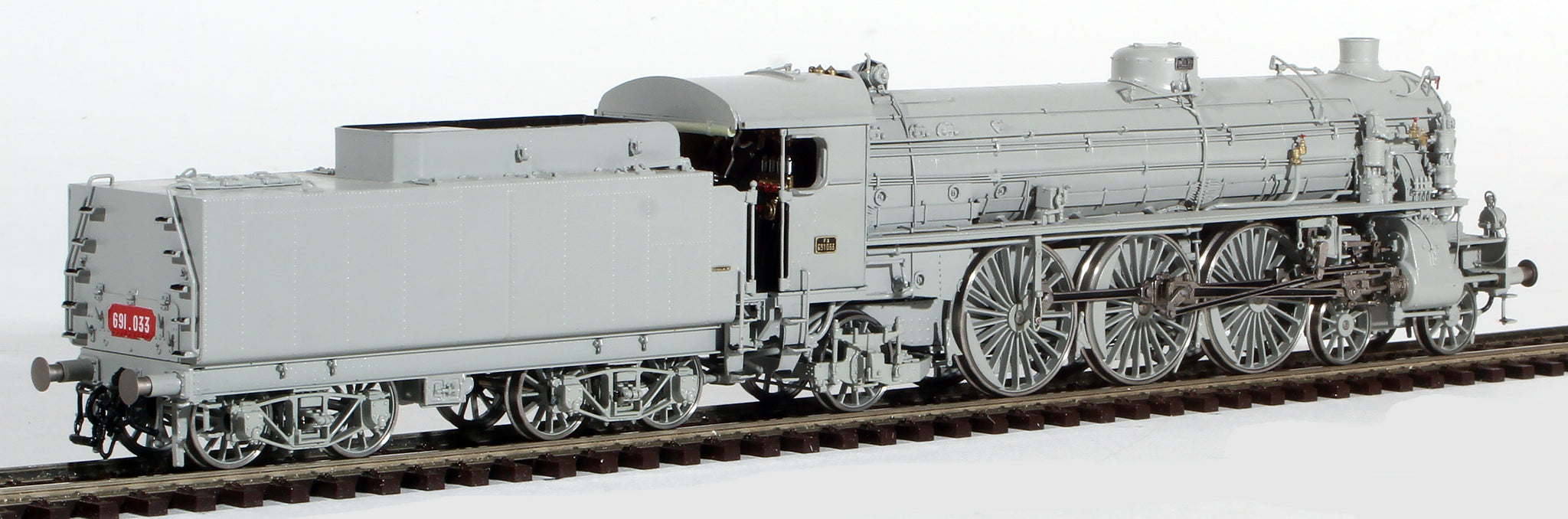 Model: Micro Metakits Class 691, meticulously crafted in brass, embodies exquisite attention to detail. Its fully realized cab interior, operational boiler hatch revealing intricate boiler features, and a brushless, ironless bell motor underscore its artisanal quality. Adorned in the iconic Italian photo grey livery, this masterpiece encapsulates the technical and aesthetic essence of the Class 691 locomotive. Micro Metakit models are simply the best HO Brass models made. Only 80 of these exquisite models were produced worldwide.
